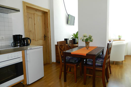 Offene Küche im Wohnbereich mit Eßecke für 4 Personen