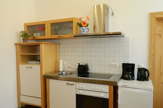 Offene Küche im Wohnbereich mit Eßecke für 4 Personen